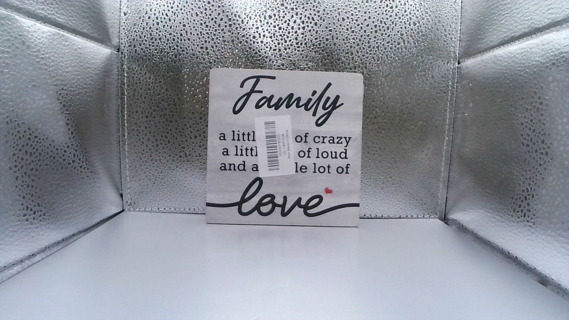 Celebrate the joy of family life with this light gray wood sign. Featuring black lettering that reads “Family – A little bit of crazy, a little bit of loud, and a whole lot of love,” this piece adds warmth and humor to any space. Perfect for living rooms, kitchens, or as a thoughtful gift.
