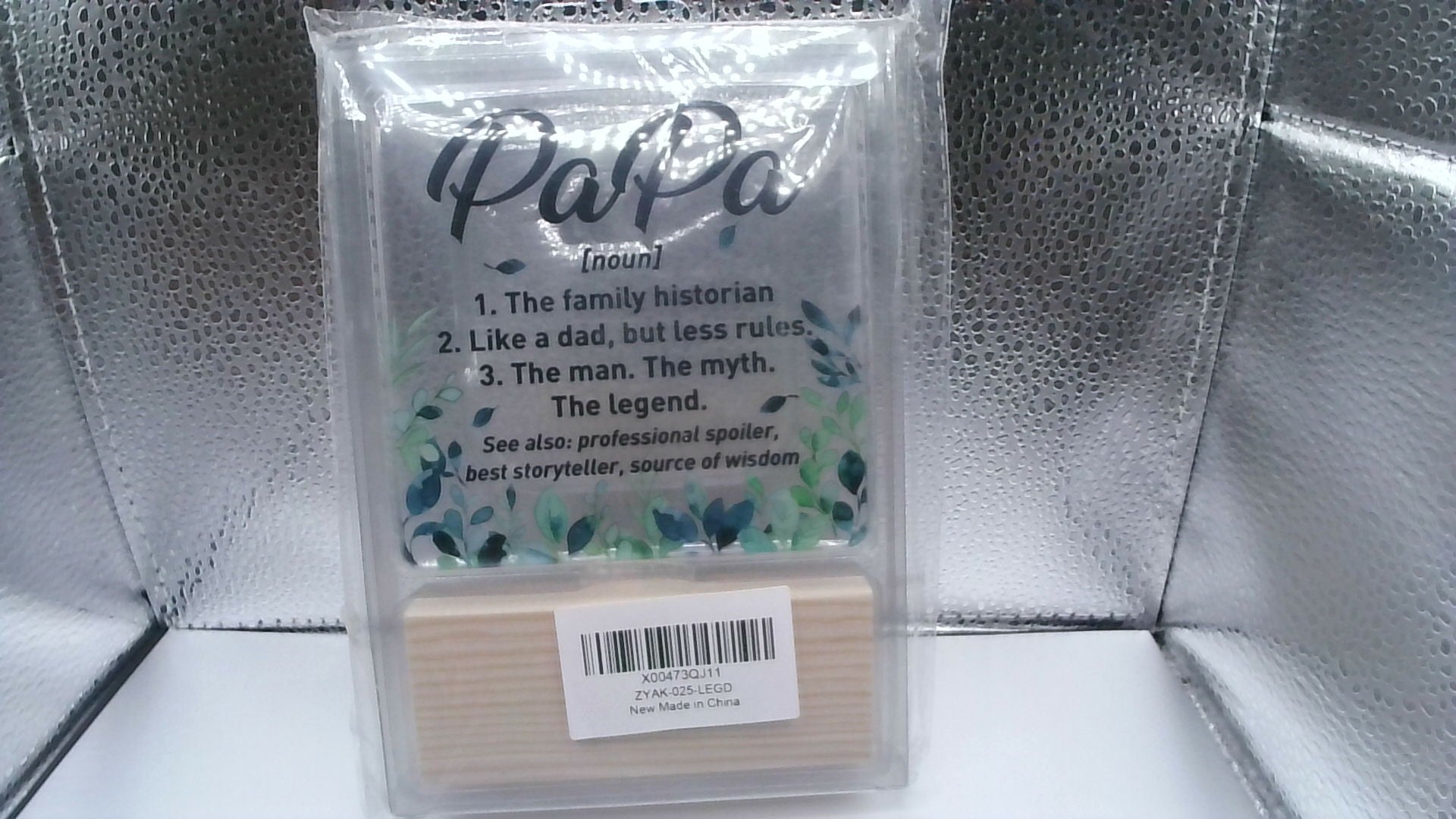 Celebrate the special grandfather in your life with this charming clear sign featuring a wooden holder. Perfect tribute to "Pap" with these endearing messages: