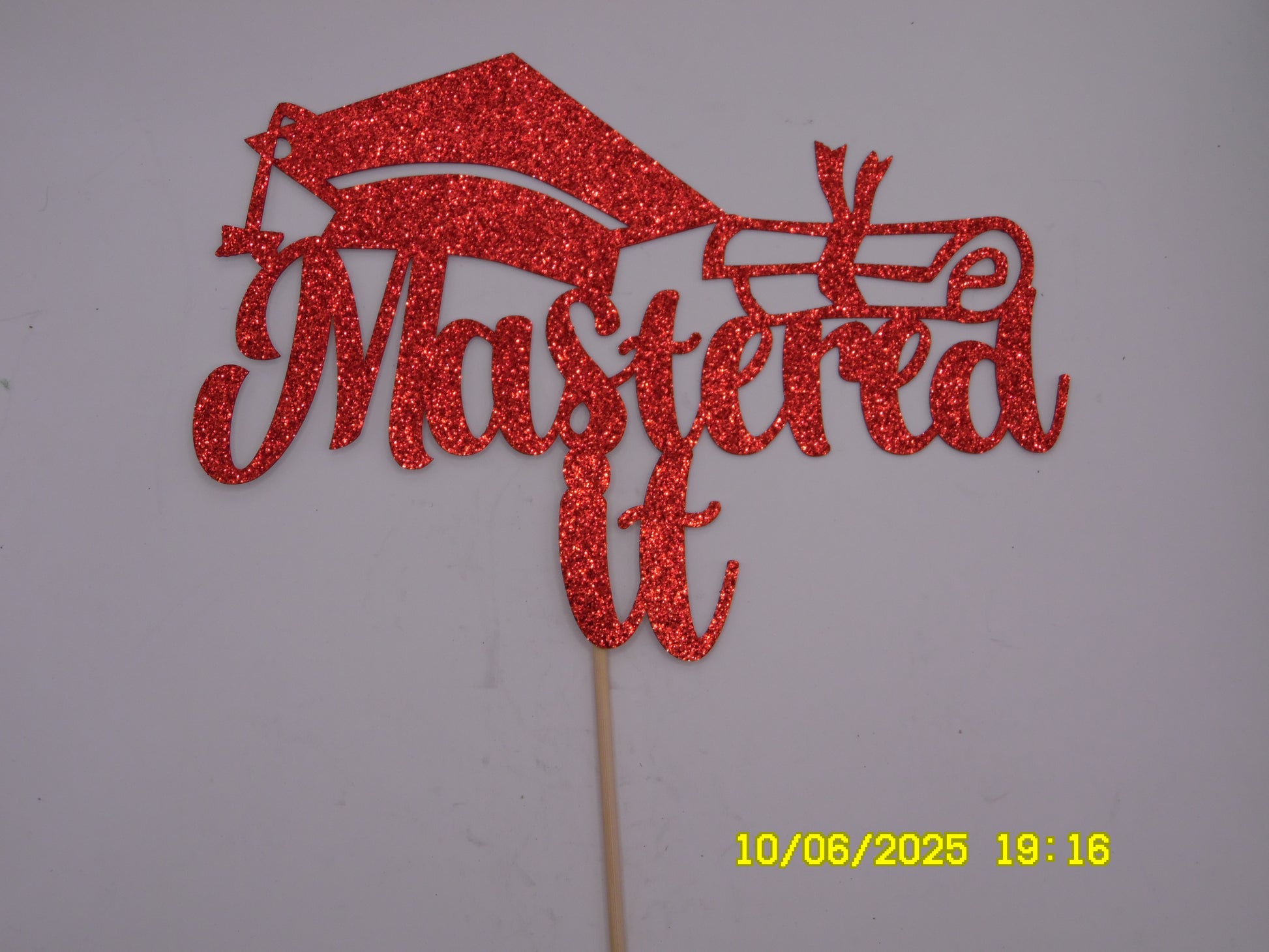 Glittery Red 'Mastered It' Cake Topper