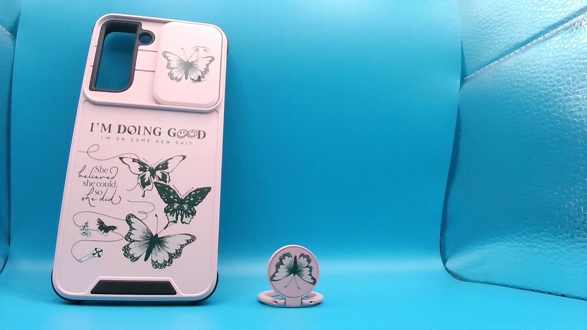 Protect your Samsung Galaxy S21 with this stunning pink case featuring beautiful butterflies and uplifting inspirational quotes. Perfect for those who want their phone to reflect their positive mindset and love for nature's beauty.