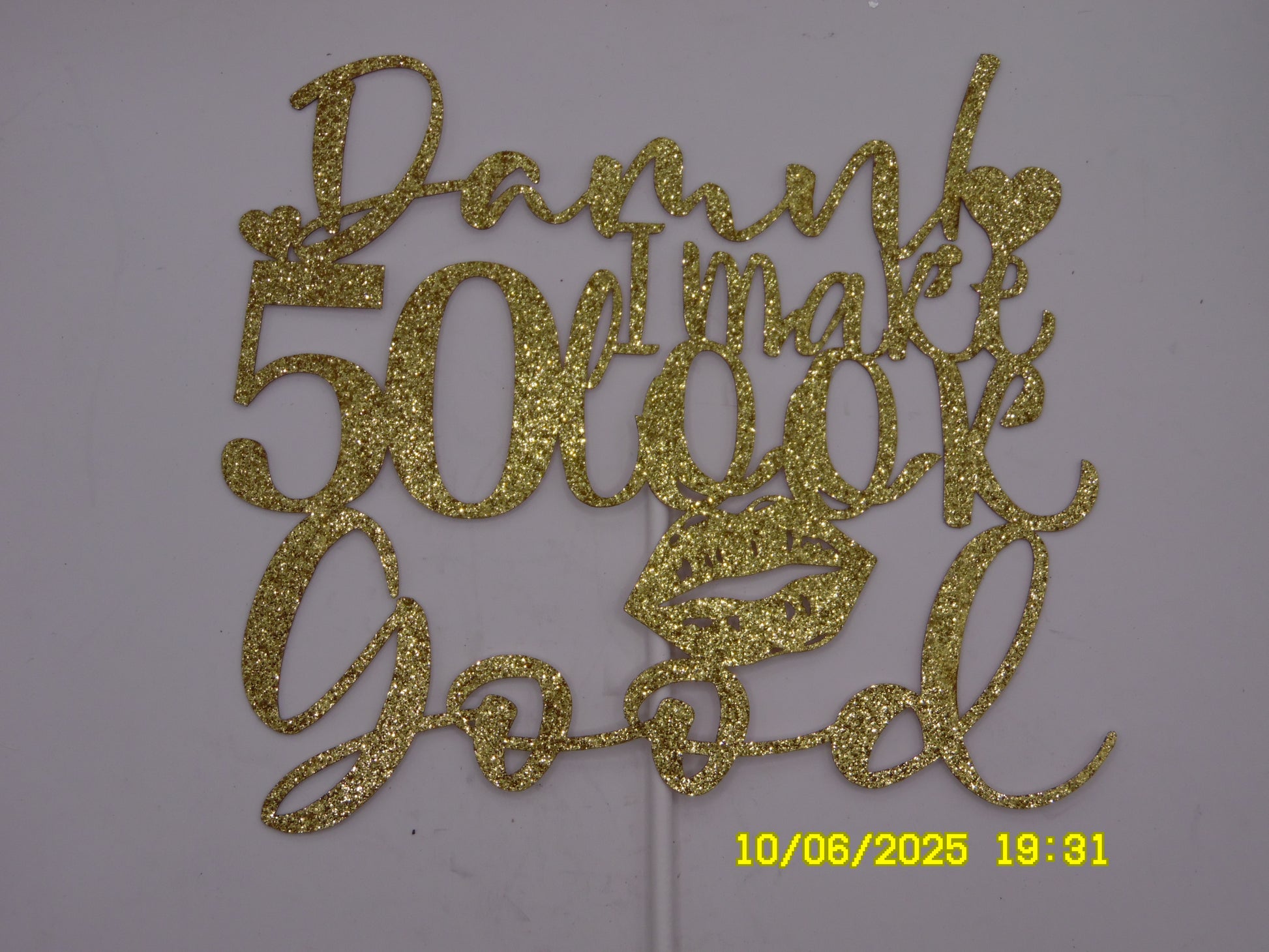 Celebrate turning 50 with confidence and sparkle! This bold and glamorous sparkly gold cake topper is perfect for someone who's embracing their milestone birthday with style and attitude.